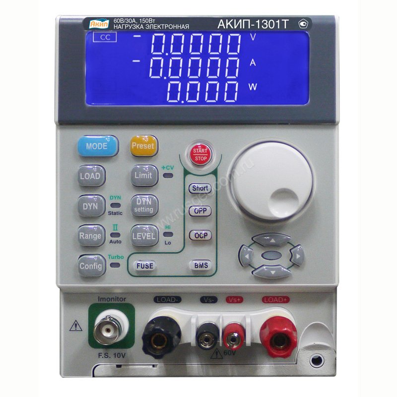Электронная нагрузка АКИП-1302Т для отбора мощности у источников питания или нагружаемых объектов использует такие активные компоненты, как операционные усилители. Реализована дискретная установка входных параметров (непосредственным набором на клавиатуре или в пошаговом режиме).